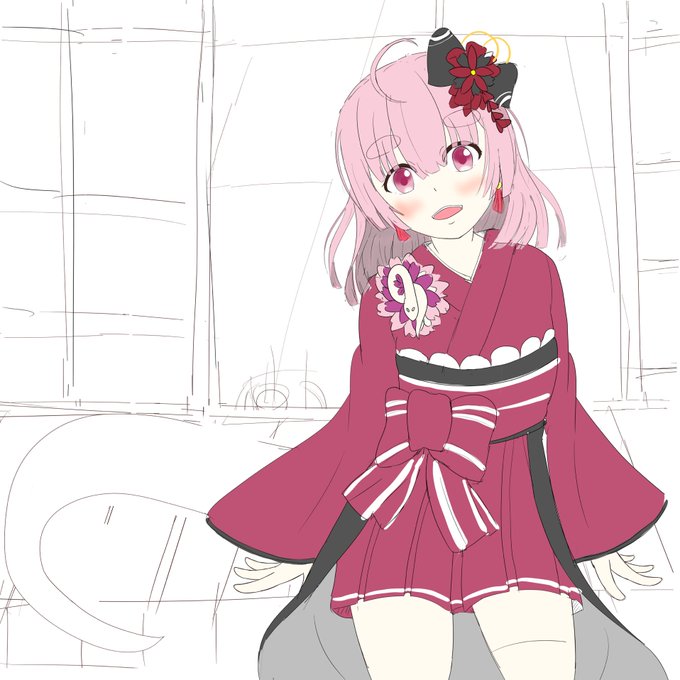 #にょろあ〜と 一華様お誕生日おめでとうございます!!そして3D化!夢を叶えてくれてありがとう!!!まっすぐ夢を追う姿に何度も元気づけられました。応援していてよかった、本当に幸せ!! 送った誕生日イラストの髪飾りに輪っかがなかったので切腹しながら付け足しました!!