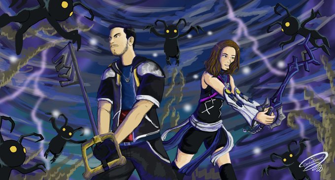 Ilustración ambientada en Kingdom Hearts, hecha en tableta gráfica wacom cómic.