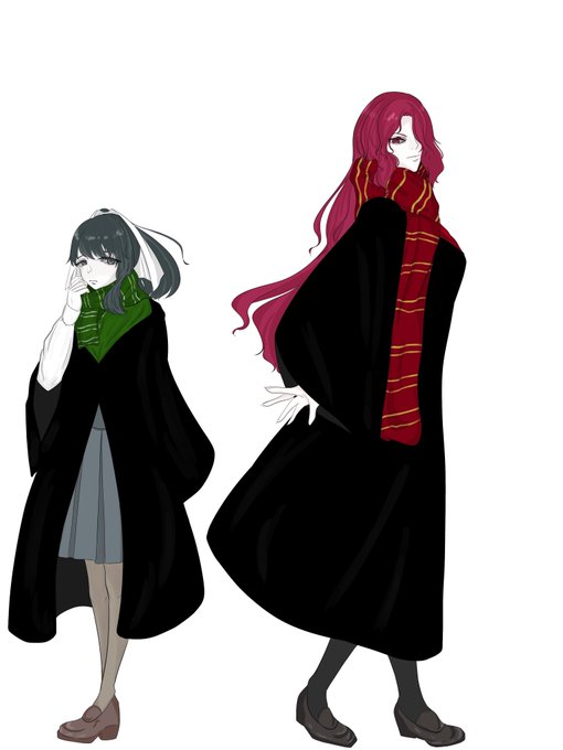 🐂⚜️描くためにまずは描かねばと、精悦ながら練習としてザッと描きました……🫶身長差体格差の違いある同い年最高です……🫶お互い寮カラーに近しい髪色、どれとっても最高です……