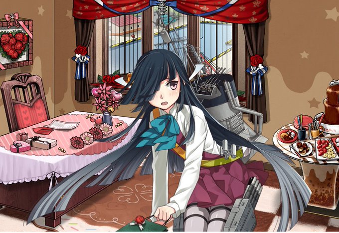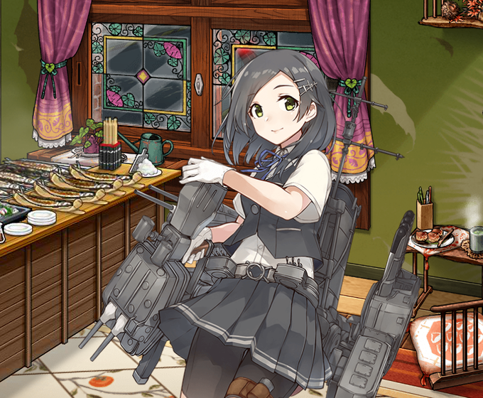 10月25日は陽炎型 3番艦の黒潮の日です 司令はーん。うちと、鎮守府の秋祭り、いかへん? 屋台も美味しそうや。……おお、十七駆な。は~、かなり盛り上がってるわ。 #艦これ #進水日