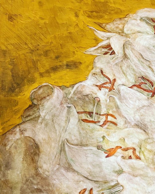 ひたすら胡粉で作業。百合は何度も描いて来たので、あまり苦労がありません。しかし、さらに踏み込んだ表現をしていきたいです。ここまでは経験則。ここからが勝負です。