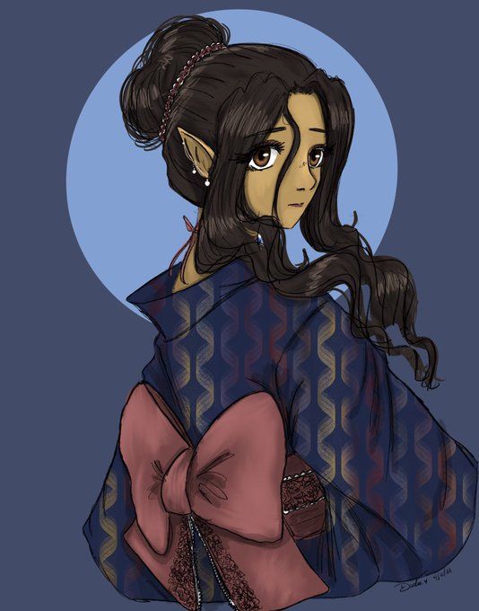 My kimono series study for our #fatesunited babies! This was fun and I learned a lot💕 catch our stream Thursdays at 4:30 PST on https://t.co/Bbj9QSQ0z4 Kahu belongs to @JonathanSpeirs Annias to @pip400art Zach to @MarqueeGamingTV DMd by @BardicDice #DnDcharacter #dndartists