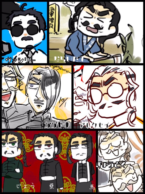 Q.いつも描いてるおじさん4人は何者なんだ A.毎度セットで描いてる大将のおじさん…各軍の偉いおじさんです。(信憑性)隣の人は参謀長だ!(?)