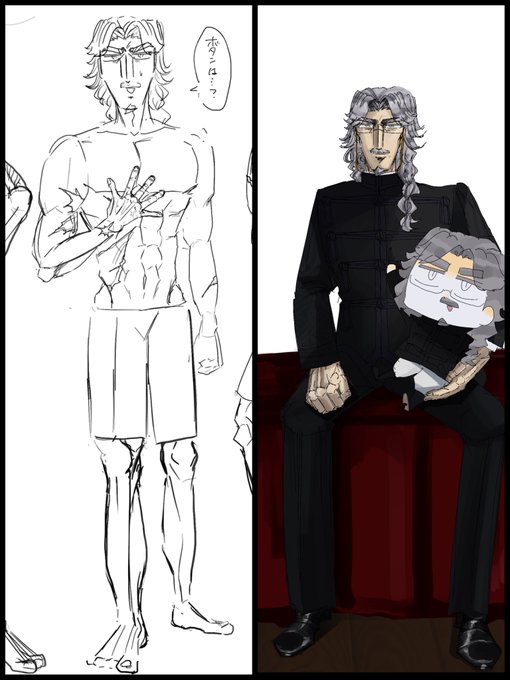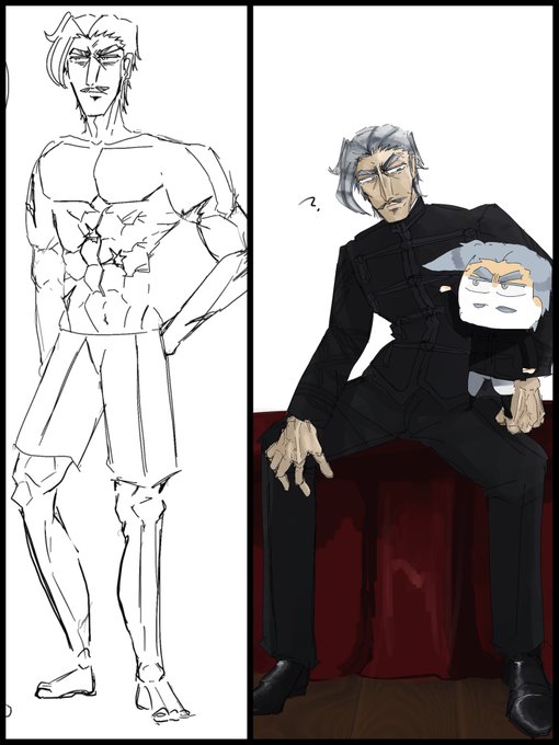 髭を追加しましたが2枚目一番左のおじさんです。イルムガルドおじさんといいます🙆 ょぅじょことイゾルダから分裂した先代当主です(随時設定が変わります)