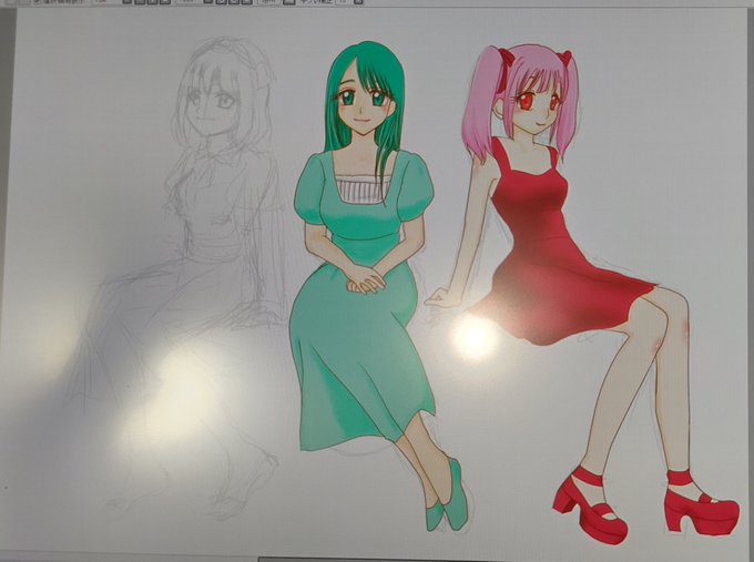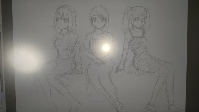 ちょっと線がガチャガチャなんですが、私は顔しか(?)描けないので、昨日から座ってる絵を練習しています。今日は、2人目まで描きました。1月から3月まで使っていたアイコンの人で、真ん中が1月、右が2月です。明日は3月の人を描きます☺️