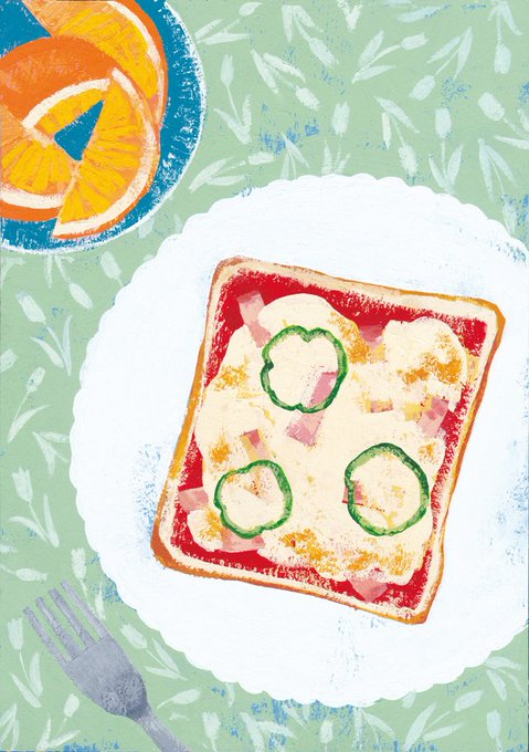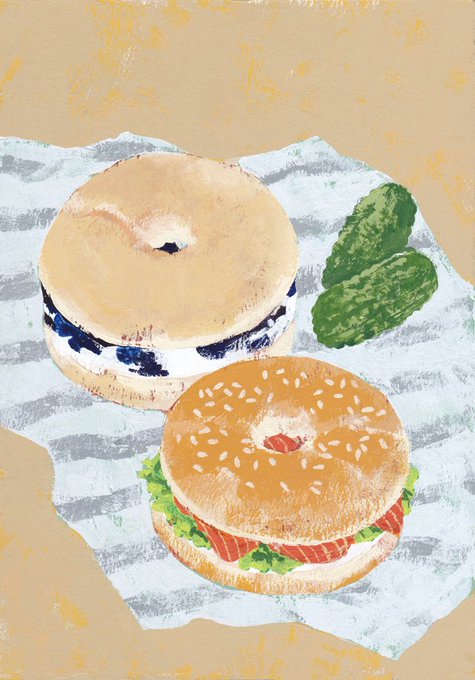 グループ展にあわせ、こちらの2点も描きました。ピザトーストとベーグルサンド!