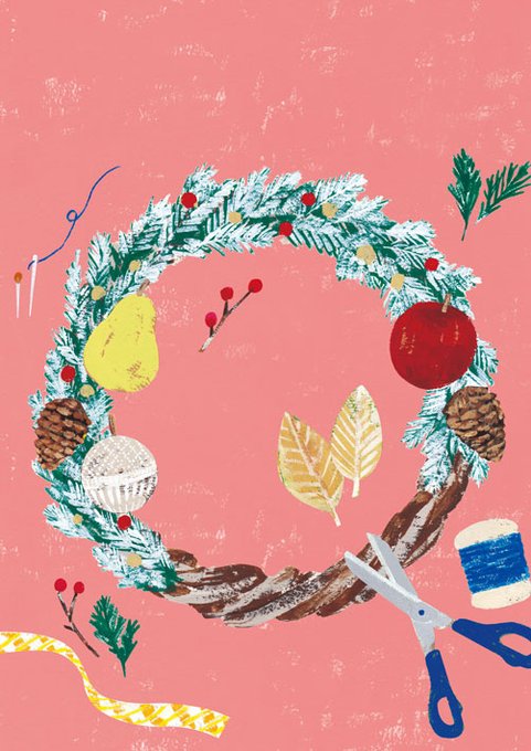 \ WORKS / 毎日新聞購読者へお届けするフリーペーパー「私のまいにち」12月号の表紙イラストレーションです。今月のテーマが「つくる」だったので、手作りのクリスマスリースをモチーフにしました。