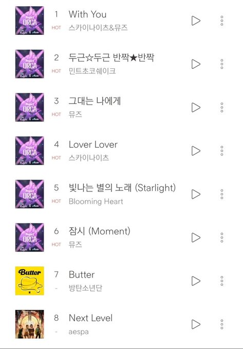 2021년 6월 프로젝트 오르카. 러버러버사태가 일어났다. -벅스뮤직 스트리밍 1위. 엄청난 뽕이 차오르던 시기였지. 게임사는 스트리밍 50위권 내 차트인에 성공할 경우 뮤직비디오를 제작한다는 공약을 내새워서 다들 총공...을 해버리곤. 결국. bts의 버터를 잠시나마 누르고. 전곡을 10위안에.
