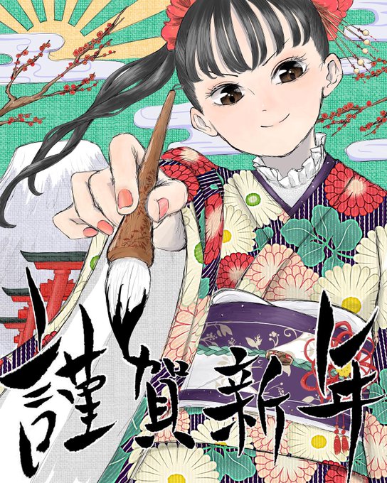 ギリギリセーフのお正月イラスト🎍 今年もよろしくお願いします🙇♂️ #絵描きさんと繋がりたい #2022新年