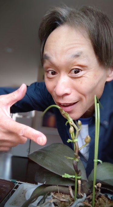 21日その8🐙 3年前に頂いた蘭です🌺 世話がいーかげんだから年々弱ってるんですが、今年も蕾を付けました😃