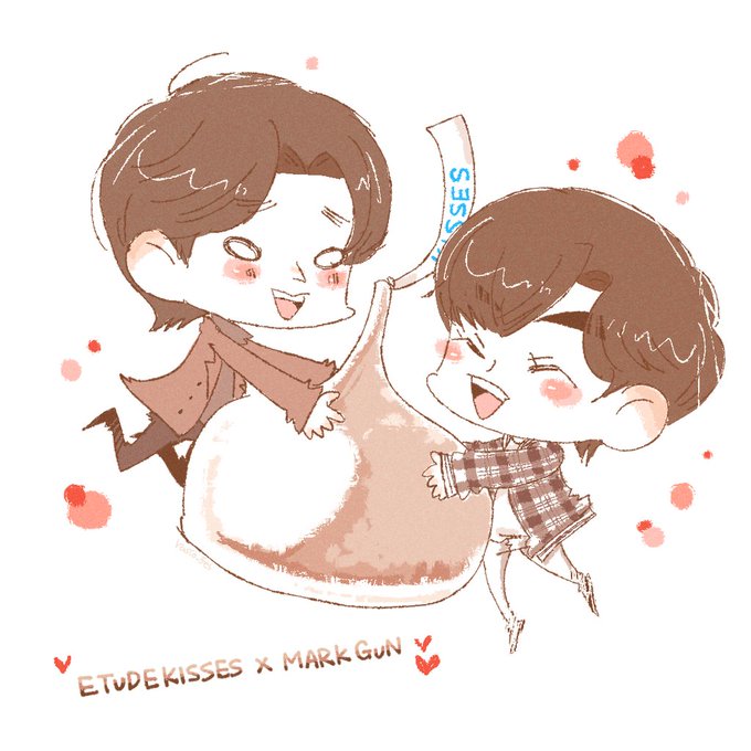 久々にオフが落ち着いたと思ったら、まくがんのイベントが可愛い過ぎたので描きました……🍫💕 #ETUDEKISSESxMARKGUN