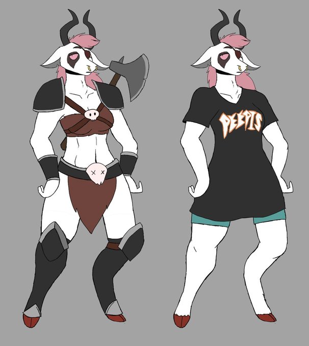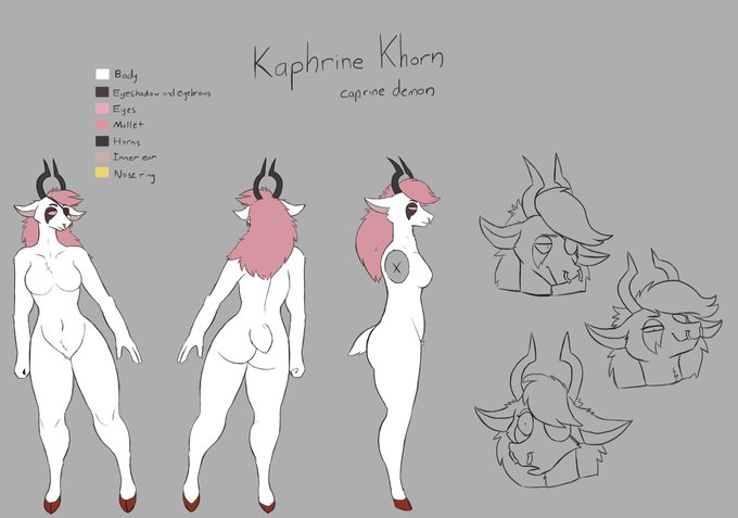 A ref sheet for my gal Kaphrine Khorn. She's an often tired caprine demon who seems to feel better off alone, yet despite that she acts as a guide and guardian to Lilac in New Greed City for reasons that she's hesitant to reveal. #myart #art #furryart #originalcharacter #myOC