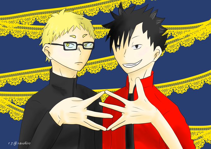 今日の朝方衝動的に描きたくなって、かいてしまった。 スズキの例のマークをするクロ月。 手描くの苦手だからいい練習になった気がする。気がする。 黒尾の髪型いつも迷子だし、月島いつも輪郭丸くなる……