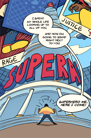 Newbie Andre is eager to join the smash-crash-pow world of superheroes and meet his idols, though things don't go quite as expected.