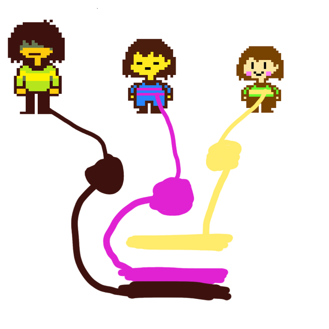 a bandeira não-binaria com as cores pegas dos sprites de Kris, Frisk e Chara: