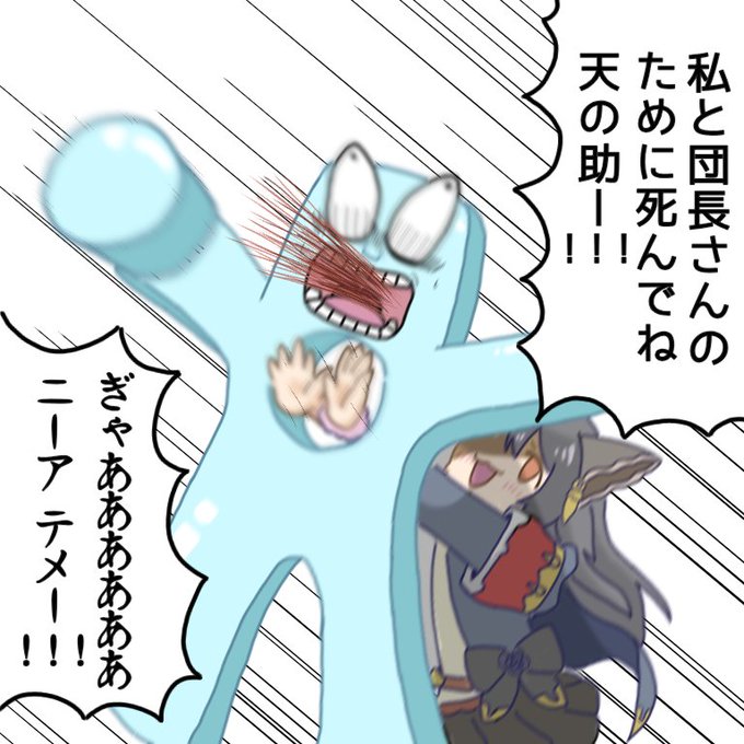 これはヒョロワーとの会話中に生まれた、石が欲しい団長の為にところてんマグナムをするニーア #殺してやるぞ天の助