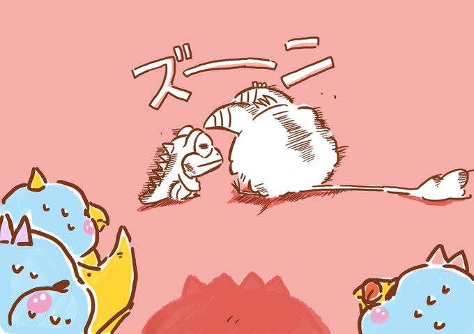 ムチョ と ムチュムチュ 「ずっと喰ってる」 #ムチュムチュ #四コマ漫画 #絵描きさんと繋がりたい #イラスト