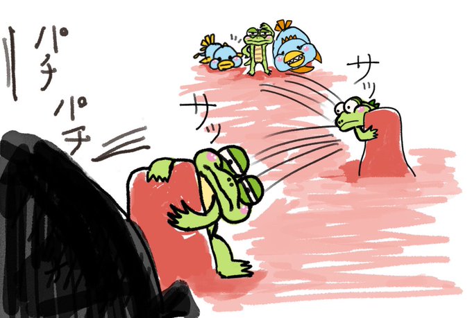 ムチョ と ムチュムチュ 「ちょっと待ったー」 #ムチュムチュ #四コマ漫画 #絵描きさんと繋がりたい #イラスト