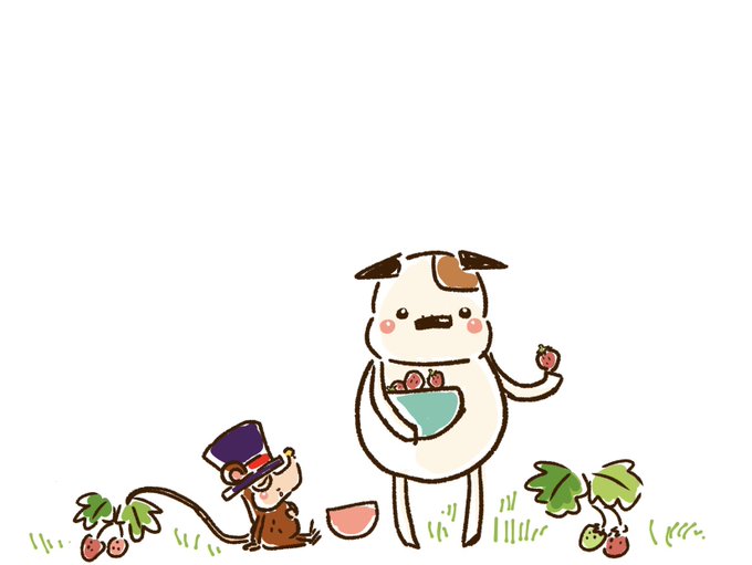 ジャロンとイチゴ🍓🐶🐭 #イラスト #ジャロン