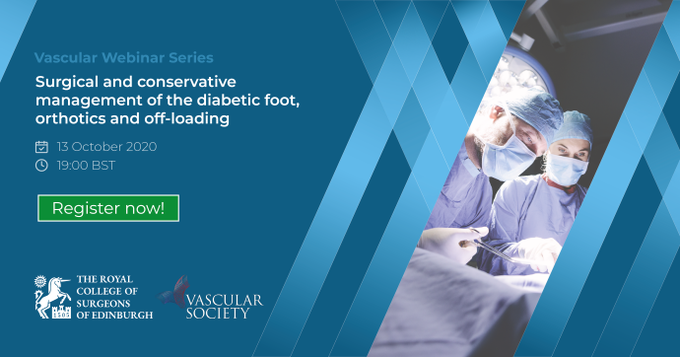 Tune in for the next session in our Vascular Webinar Series 'Surgical and conservative management of the diabetic foot, orthotics and off-loading' on Tuesday 13 October at 19:00 BST. Book here: https://t.co/D49qLEmItx