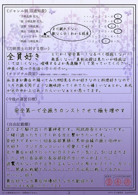 いい機会なのでやってみたかった審神者履歴書つくりました!