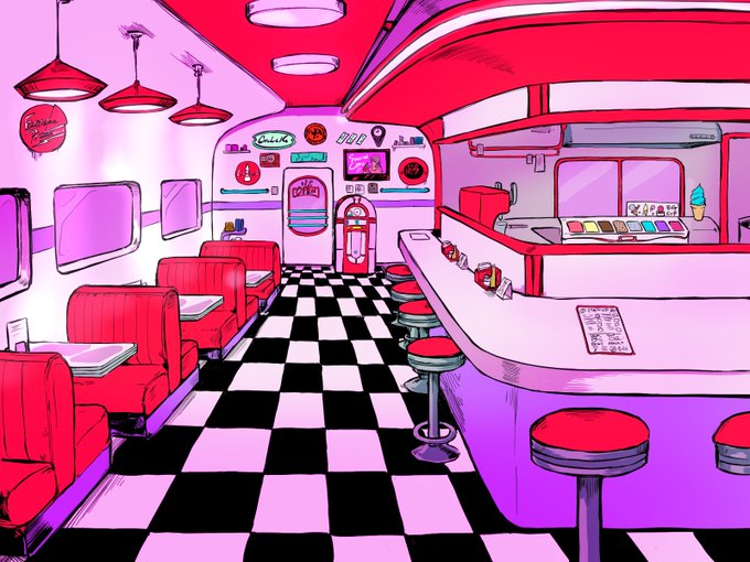 また設定まとめるけど、こんな具合で目に毒な色した店です🍕