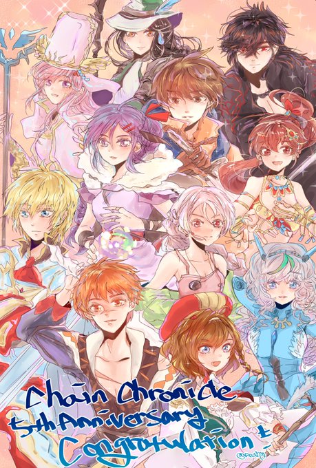 チェンクロ好きな海外チェンクラです! 5周年もお祝いできるようになってとても嬉しいです! 好きなキャラクター達と共にこれからもチェンクロをいつまでも楽しんで行きたいと思います! 義勇軍+3部の主人公達の絵を描いましたのでよろしくお願いします #チェンクロ #チェンクロ5周年 #チェインクロニクル