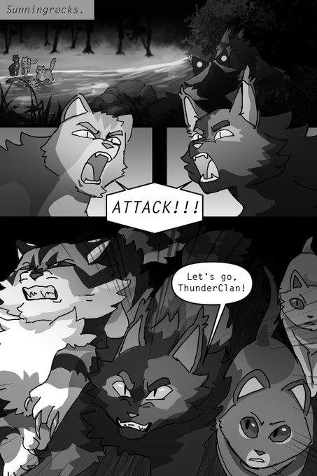 wc dot com is doin another art challenge so i jumped on it so heres sunningrocks battle from the pologue #warriorcats #redtail #oakheart #tigerclaw
