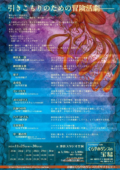 【情報共有】スタジオ空洞のくらやみダンス「くらやみダンスの宝島」、受付開始は開場と同じく開演の30分前(全席自由)。 #受付開始タイミング #くらやみダンスの宝島