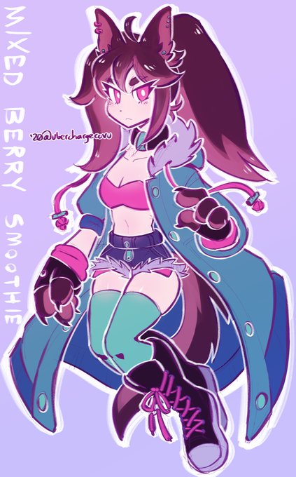 art trade of a cyberpunk mechanic doll girl design for @TaxideaTaxus_ cuz we both love @Dollightfully so we made each other moodboards and then created chars based on them 💜💙💜💙