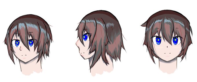 自分のアイコンとヘッダーを新しくするため書きました。同じキャラを三方向書いて考えた結果自分はどうやら正面が一番書きやすいようです。#イラスト #オリジナル #アイコン #イラスト練習