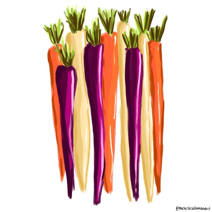 Somehow I’m still drawing through the holidays (can’t stop won’t stop, but also just when I feel like it so I’m not having a full working vaca) and I drew these carrots today for an illo challenge on IG.