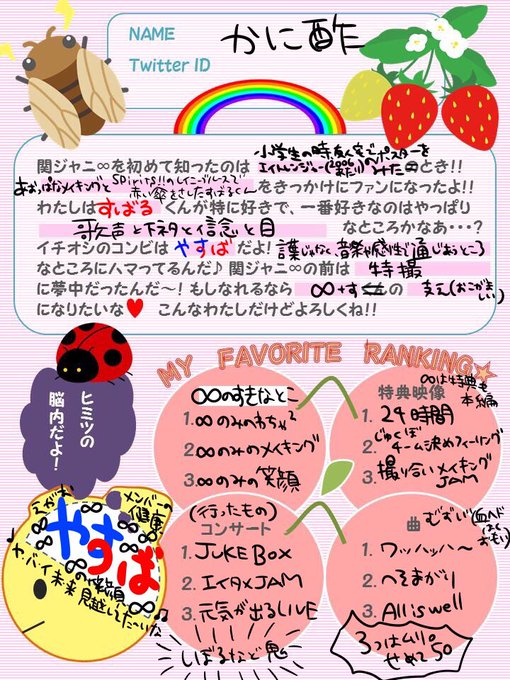 字汚い!明るめを心がけた頭わるめです!!!!あとほぼやすば!!!!しぼれない!!! #関ジャニオタクのプロフィール帳
