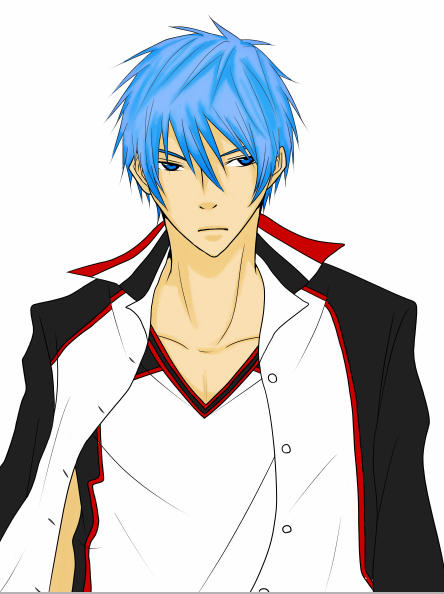 12.服に影をつける。 服の影付けを行う。それぞれ同色の濃い色で塗る。白の部分のみ薄めの水色を使用。