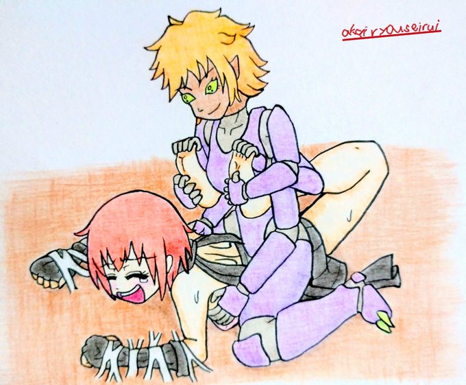 今日は #ライバルが手を結ぶ日 だそうで、 輝夜と妹紅が共闘する過去絵を掲載します。 って思ったけど、共闘はこれしか見つからなかった。 #東方タッグ #過去絵を投げて絵を描いた気になろうキャンペーン