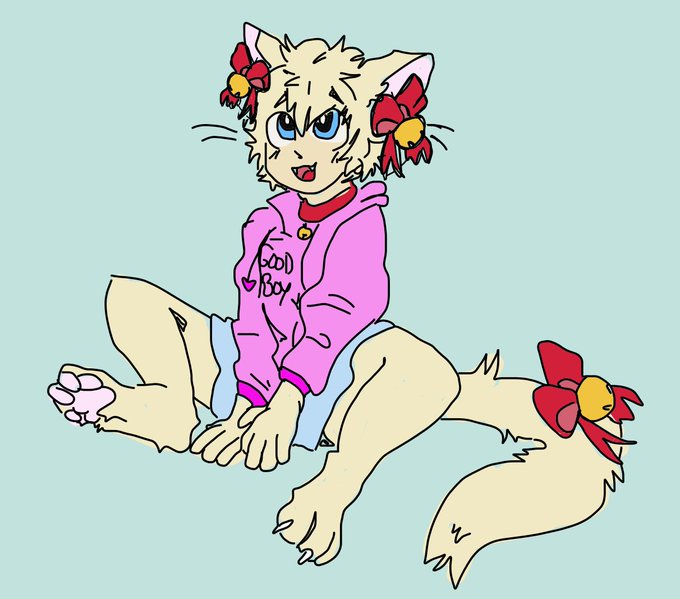 This is Bells! He's an adult cat boy who loves pink and skirts. His favorite snack is goldfish and he must always have bells and ribbons on his ears and tails. He is however a stinky boy, declaring baths "wet beast wednesday"