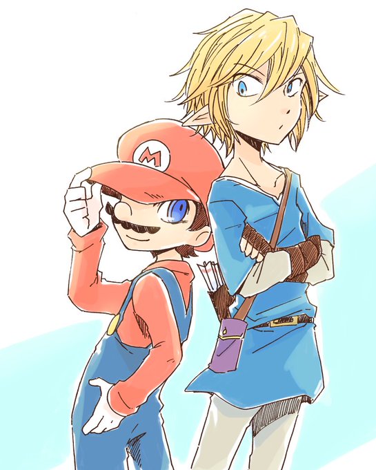 らくがき スマブラのマリオとリンクが対になる感じがすき😍
