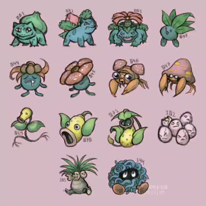 every single gen 1 grass type, epic speedpaint courtesy of Clip Studio Paint