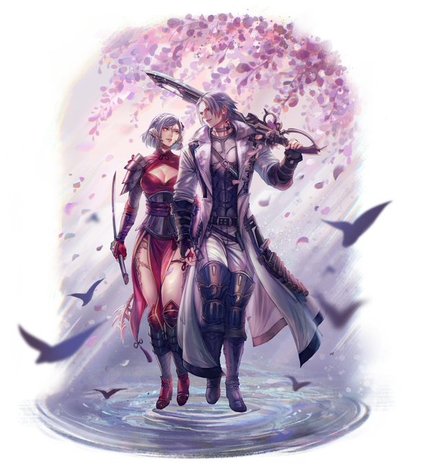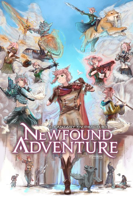 "I drew my wol in the 6.1 poster and I'm taking G'raha with me (@perikahpi)" by perikahpi