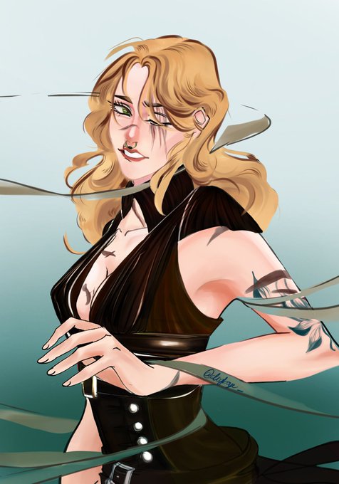 here's my anti-hero, amelia! (art by @/dogboye_, @/septlies, & @/quippin !!)