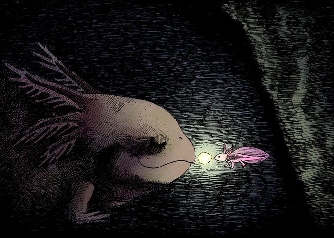"Axolotls" Illustration, pen and ink, digital color (procreate)