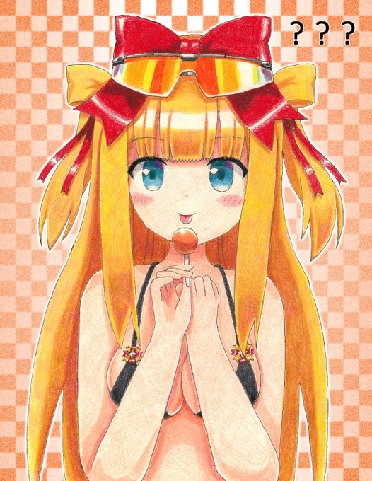 はちぷよ先生オリキャラのP子 (抱き枕カバー風) を描いてみました(*´ω`*)