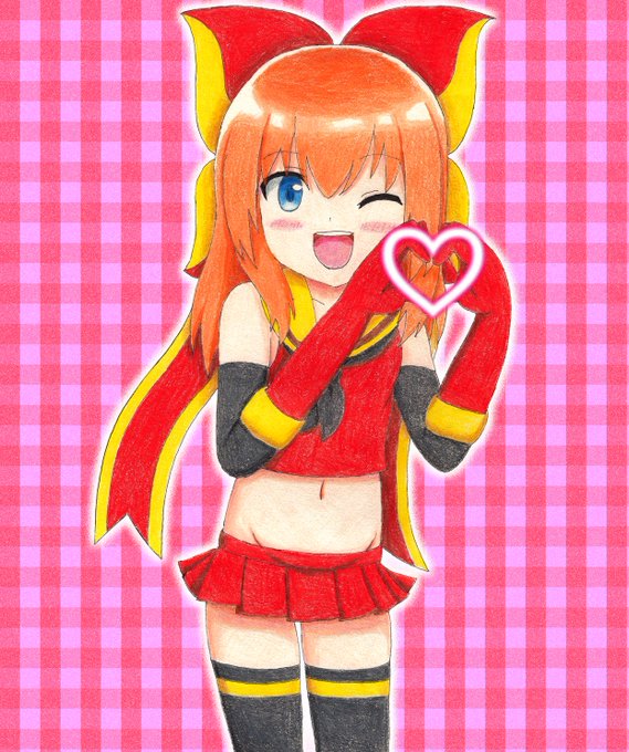 両手でハートマークを作っているリボンちゃんを描いてみました(*^ω^*)