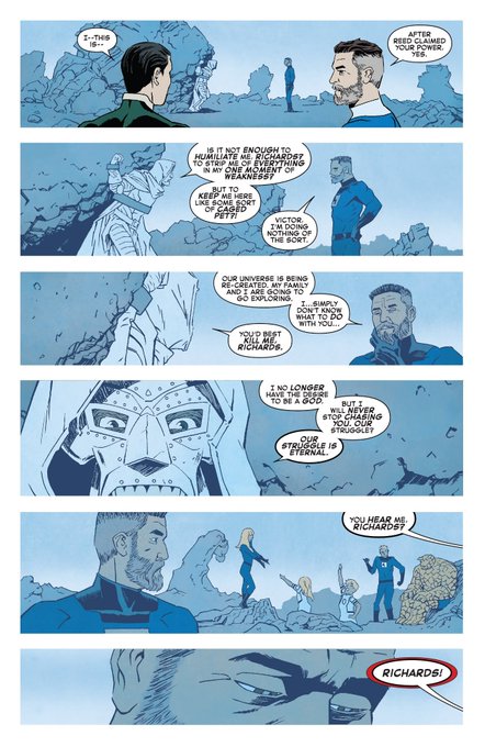 spoilers but this is the opposite of the latest take by cantwell in conquered shores of when things got dire, doom and reed teamed up... reed being the ruthless hopeless one in this timeless timeline.. is a lot.