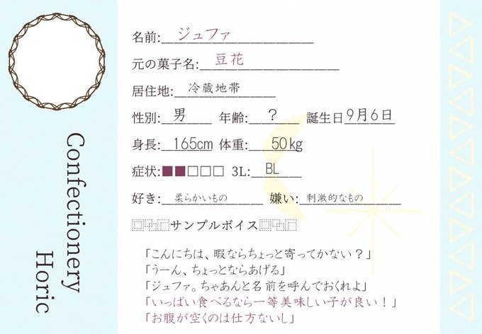 #こんほりキャラシ 二人目失礼します~! ジュファ、男です宜しくお願い致します!