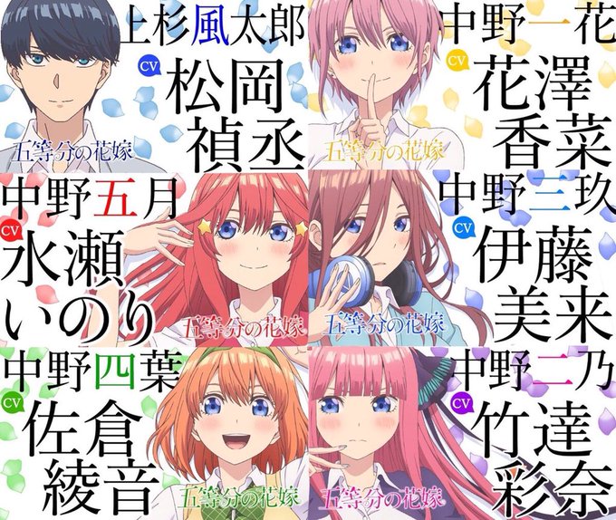 五等分の花嫁の声優が豪華すぎる件 人気投票は二乃が5位だったのはちょっと残念けどみんな可愛い!