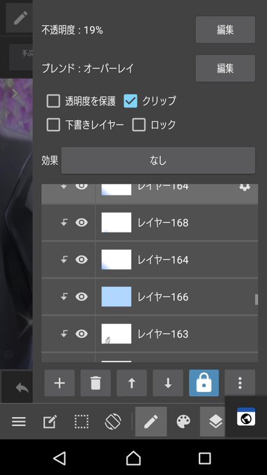 下塗り/グラデ/影/影コピー(影薄かった)/色変え/色グラデ/反射/色味→結合&コピー&モノクロ&オーバーレイ (レイヤー減った方)(無駄に多いわりになんかアレ(アレ))