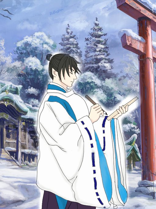 過去のお題から「まく」です。急に降ってきた雪に自分のマフラーをまいてあげる🎴とそれがうれしくて照れくさい🌊さんです。