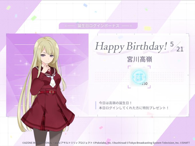 今日 5月21日は宮川高嶺の誕生日です。高嶺をお祝いしよう #ラスバレ おめでとうございます(о´∀`о)