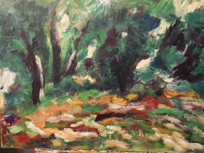 Summerforest, looking for a cool place in the shadow - by me - #acrylicpainting #expressionism #forest #trees #artlover was on my easel surprisingly fast!